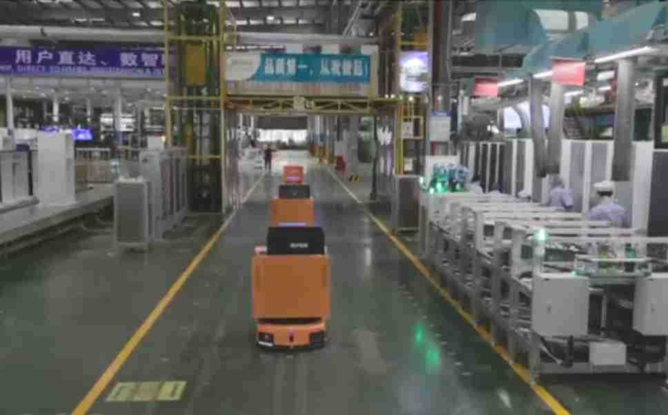 为车载冰箱物流配送打造的智能解决方案,,,包含产中物流通过潜伏举升AMR搬运至线边,,产后成品物流智能仓储,,流程包含产中物流智能齐套入库,,,,线边安灯叫料AMR智能配送至线边,,,成品入库、、、出库,,,通过无人堆高车机器人,,,,智能仓储管理替代人工作业管理,,,,实现更高存储、、、更高效率、、、、更具柔性化的解决方案。。。