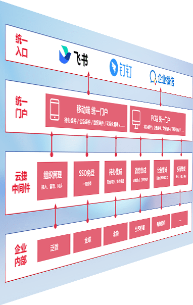 对协作平台提供支持服务,,支持企业应用与协作平台对接,,包含组织同步、、、消息集成、、待办集成等。。。。支持目前主流的协作平台:钉钉、、、企微和飞书。。。。