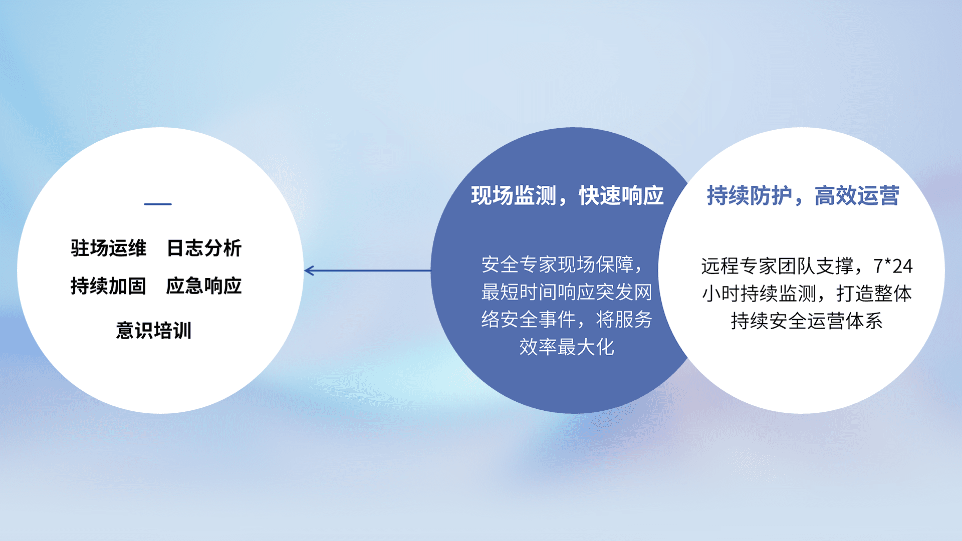 针对客户行业特性,,,,提供专属的一站式安全管理服务,,帮助客户全面感知网络空间威胁,,,,通过安全专家的线上、、、、线下防护支持,,,,实现风险闭环,,将安全保障常态化,,为客户打造常态化安全运维运营服务。。。。